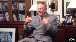 罗拉巴克议员在进入国会之前曾经是里根总统的演讲写作人。他的办公室墙上挂了很多他与里根总统的合照。
